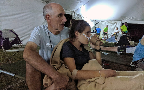My race strategy was simple. Eat sugar, drink water, keep it salty and slow down. Wanting to spend as much time with my family as possible, I only stopped at the crewed aid stations. At mile 30 they urged me to sit down as the heat and humidity rose. Mom slathered sunscreen on my ears and Dad shaded me with an umbrella as Robert assessed the calorie count in each pocket of my Nathan hydration vest. Love comes in many forms!